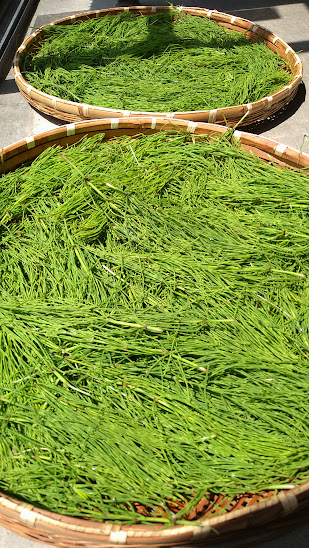 スギナ、たんぽぽ、ドクダミ、カキドオシ、フキ、ヨモギ、ギシギシなど、今では雑草として目の敵にされ、貴重になりつつある薬草たちが、自然のままに自生しています。