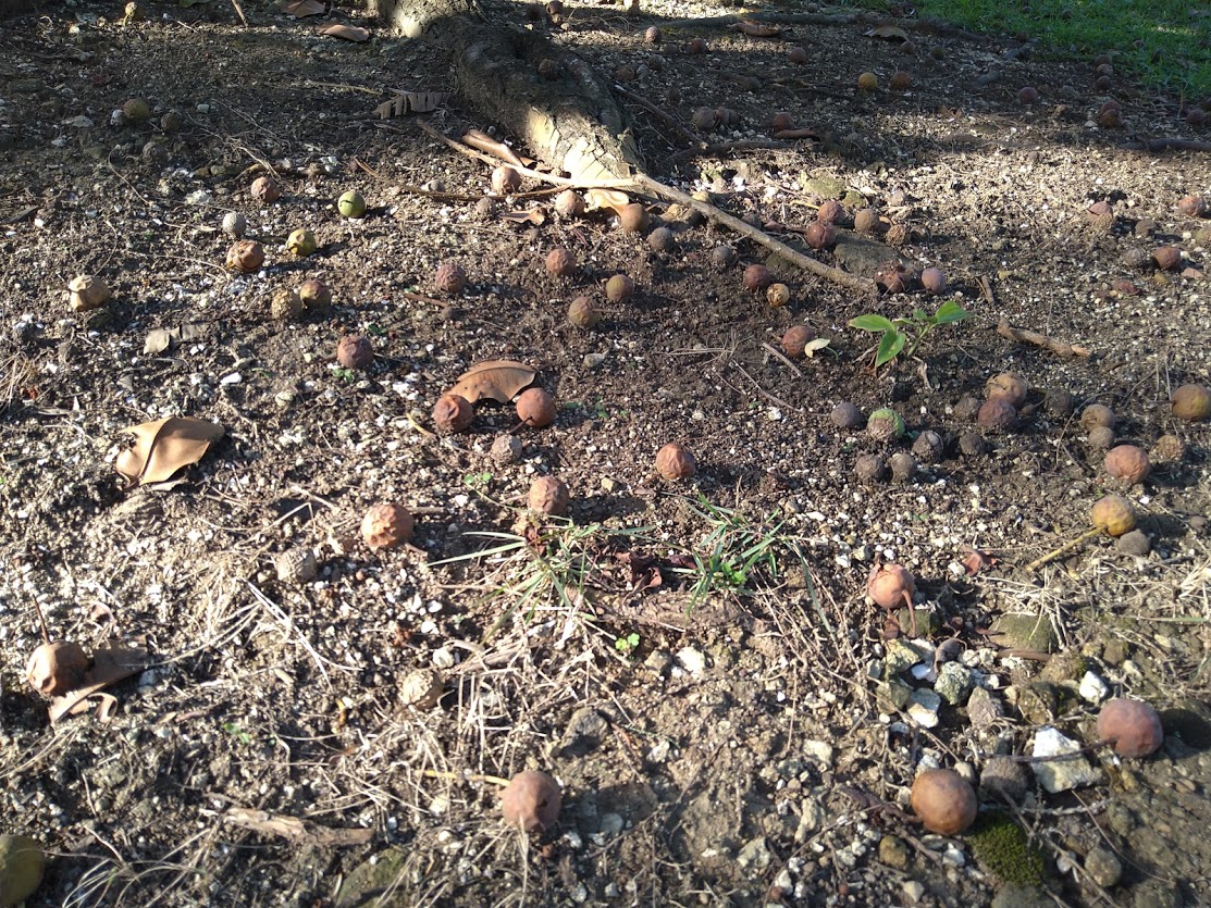 自然のままならば、この核からやがて芽が出て生長し、何十年もたつと下の写真のような大木に育ちます。この小さな種ひとつひとつが、大いなる生命力を内包しています。
